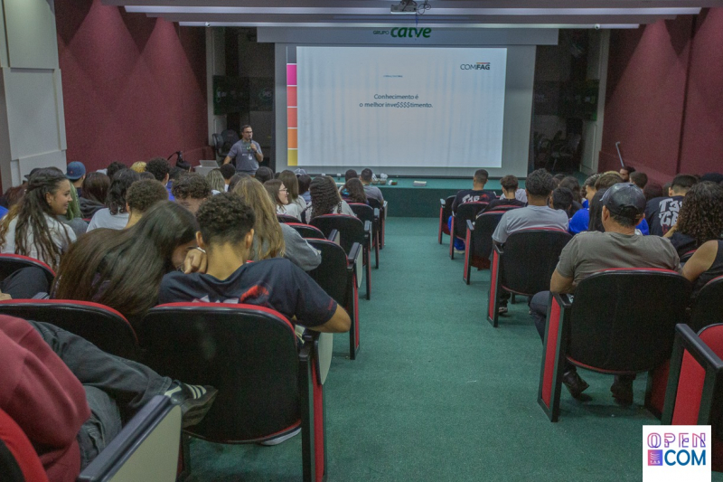 O Núcleo COMFAG, dos cursos de Comunicação do Centro Universitário FAG, promoveu na última terça-feira (5) mais uma edição do OpenCom: Workshops da Comunicação. O evento reuniu 120 estudantes do Colégio Marilis Pirotelli em uma imersão no universo da comunicação, da criatividade e do design.