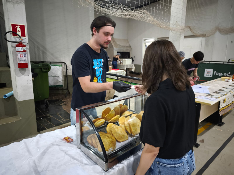 Os acadêmicos do 2º período do Núcleo Comum dos cursos de Administração, Ciências Contábeis, Agronegócios, Gestão Financeira, Processos Gerenciais e Gestão de Recursos Humanos deram um show à parte na noite desta terça-feira (11), durante a Feira do Empreendedorismo da FAG Toledo. Os grupos receberam os visitantes que passaram pelo ginásio de esportes oferecendo kebab, caldo de cana, pastel, espetinho e marmitinhas. Tudo foi preparado com muito cuidado, a partir de ideias que surgiram nas disciplinas teóricas voltadas ao empreendedorismo e que, na prática, resultaram em uma grande feira gastronômica, com apresentação da marca, produtos, atendimento, precificação e venda final. "Foi uma experiência prática que não tem igual. Eles vivenciaram todos os passos e entregaram uma feira de empreendedorismo e gastronomia de muita qualidade", afirma a professora Maira Perlin, orientadora dos acadêmicos.