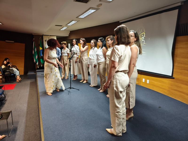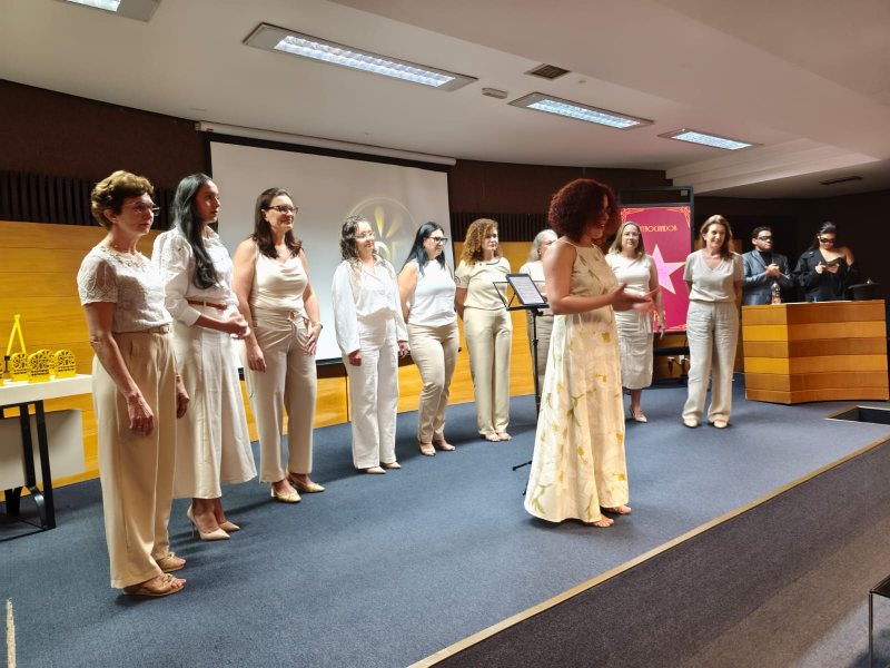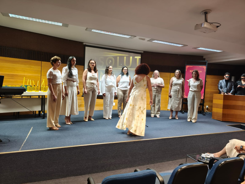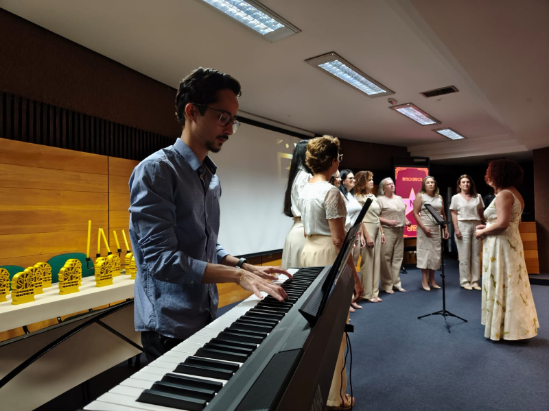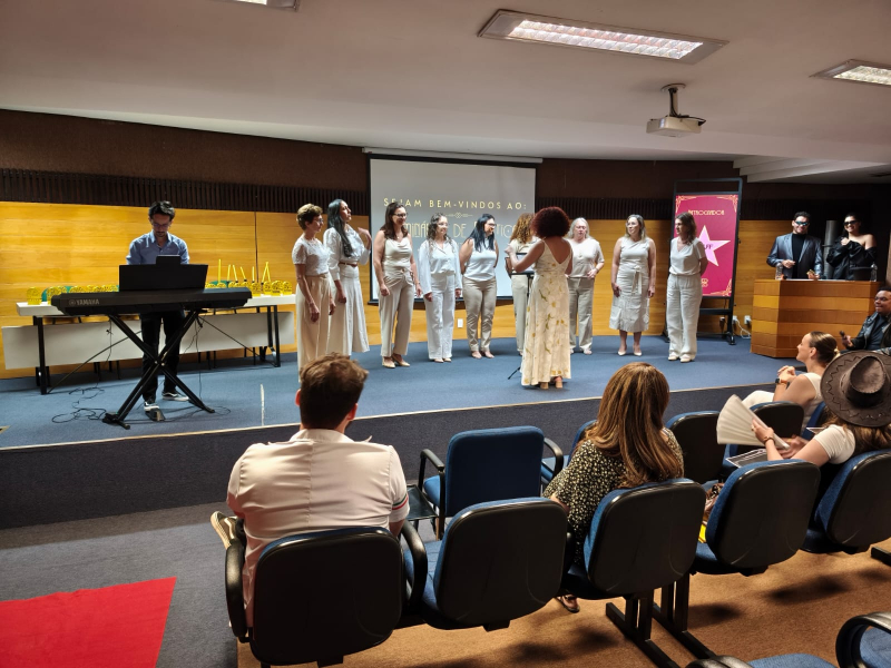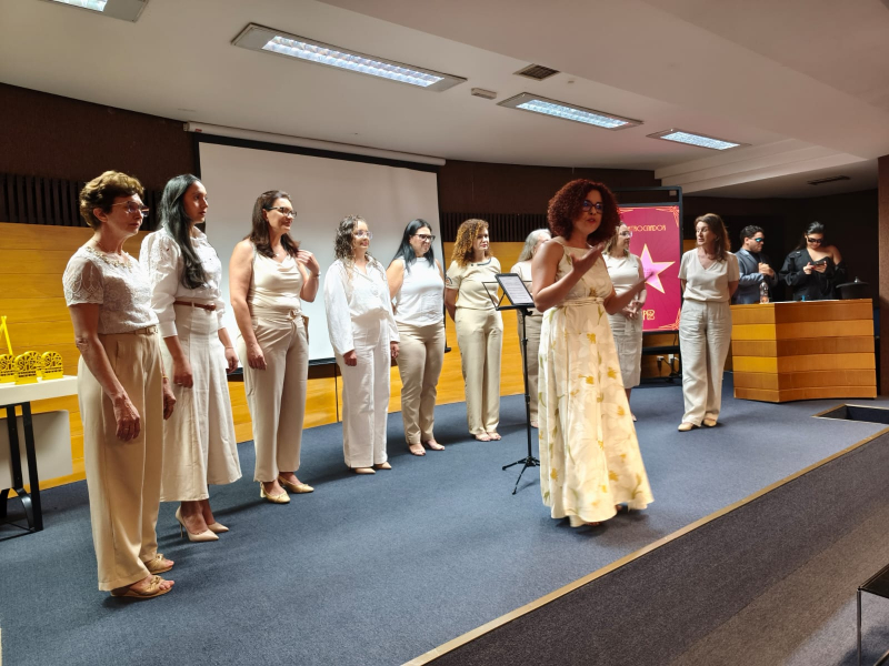 O coral da Ordem dos Advogados do Brasil (OAB) – Subseção Toledo – visitou a FAG Toledo na última quinta-feira (27), apresentando canções populares brasileiras e trechos de duas músicas do repertório de apresentações natalinas na abertura da noite do Seminário de Práticas Comunicacionais, no auditório da instituição. O coral é regido pela professora Lélis. "No Paraná existem dez corais das subseções, mas o de Toledo é o único composto apenas por mulheres. É um projeto institucional, fomentado pela Caixa da Ordem, e ficamos muito gratos com o convite dos cursos de Comunicação da FAG Toledo para apresentarmos um pouco do que ensaiamos. Agora, seguimos com agenda cheia de apresentações até o dia 13 de dezembro", explica a regente.