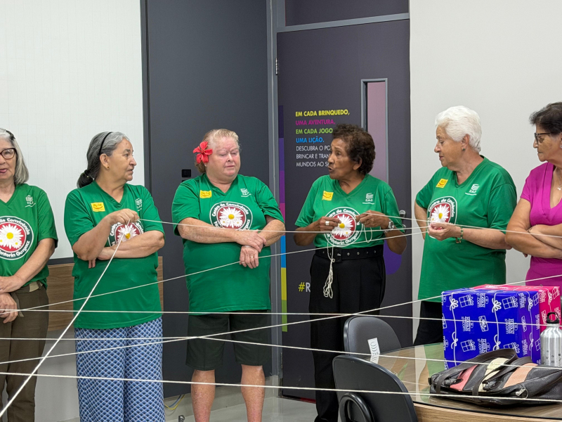 Os participantes celebraram um dia especial, que incluiu um amigo secreto como forma de agradecimento a cada um do grupo. A programação também contou com a dinâmica do “novelo”, em que cada participante compartilha palavras de reconhecimento para outra pessoa e, em seguida, passa o fio adiante, formando uma “teia”. A atividade, conduzida pelo curso de Psicologia do Centro Universitário FAG, simboliza a importância da união: se alguém solta o fio, o impacto é sentido por todos, mostrando que o grupo é mais forte quando está unido.