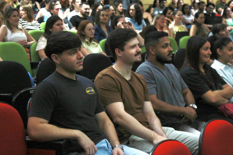 O encontro, realizado no último sábado (06), reuniu acadêmicos, professores e coordenadores em uma manhã marcada por reflexão, humor inteligente e provocações sobre mercado, cultura organizacional, diferenças geracionais e as transformações aceleradas pelo avanço tecnológico.