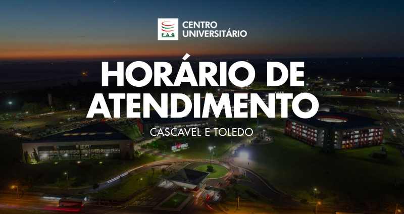 Confira os horários de atendimento do Centro FAG, em Cascavel e Toledo, em dezembro e janeiro: