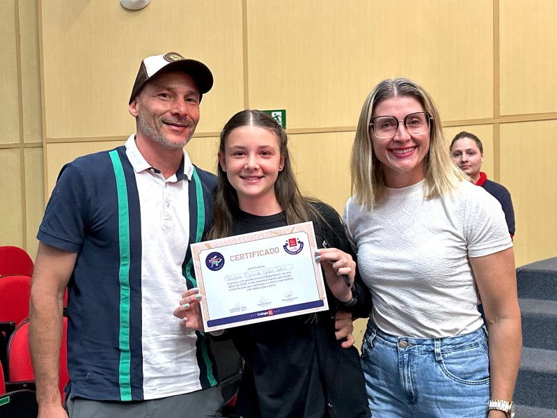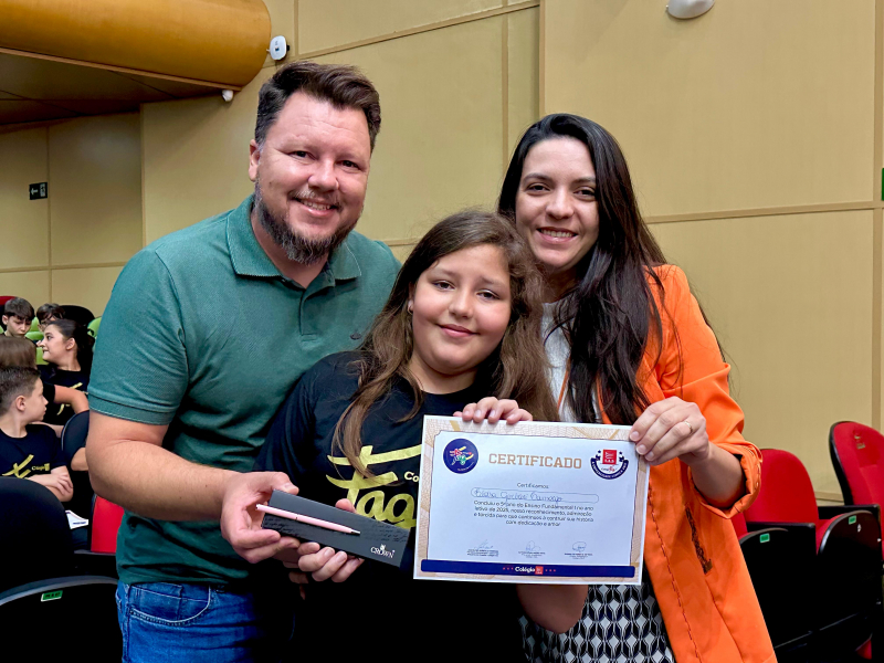 A aluna Sofia Cortung de Castro destacou a alegria vivida na cerimônia. “Me senti emocionada por estar aqui. Quero agradecer meus familiares por fazerem essa surpresa. Eu estou muito animada para o 6º ano”.