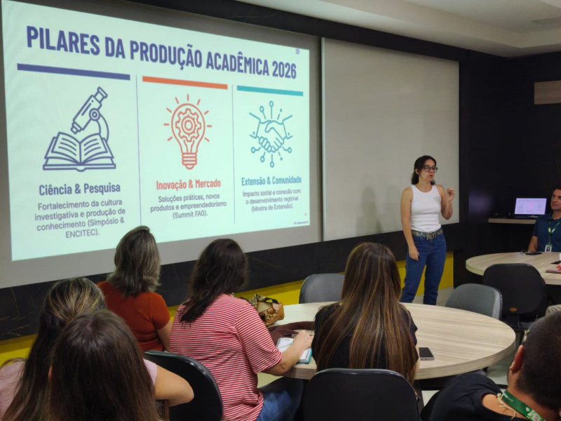 A FAG Toledo realizou, nesta terça-feira (3), o primeiro encontro presencial do ano com os professores dos cursos de graduação da instituição. A atividade, realizada na sala Yellow de Metodologias Ativas, marcou o início do ano letivo de 2026, com a fala da coordenadora administrativa, Maristela Bendo, e do coordenador pedagógico, Ney Arboleya.