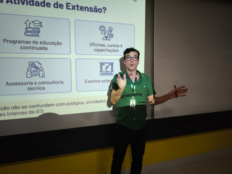 O professor Ney apresentou aos docentes as possibilidades de atividades de extensão que podem ser exploradas no semestre letivo. "A extensão universitária é um dos nossos pilares. Estamos trabalhando muito fortemente nessa área nos últimos anos, e existem muitas possibilidades a serem exploradas nas disciplinas dos cursos, para conectar alunos, professores e a instituição às demandas da sociedade. A ideia é mobilizar os professores para que esse processo seja bem produtivo e tenha forte adesão dos alunos", destaca Ney.