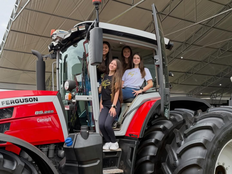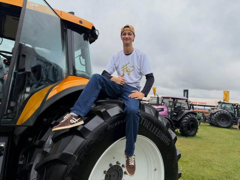Além disso, os estudantes circularam por diferentes setores da feira, ampliando o contato com o agronegócio. Miguel, por exemplo, demonstrou interesse pelo setor dos maquinários.