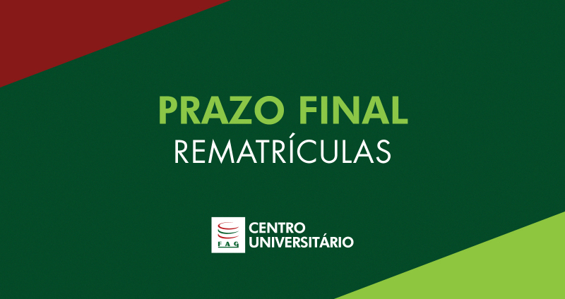 A Reitoria do Centro FAG comunica que 20 de março é o prazo final para as rematrículas referentes ao primeiro semestre de 2026, bem como para a regularização da ficha financeira.