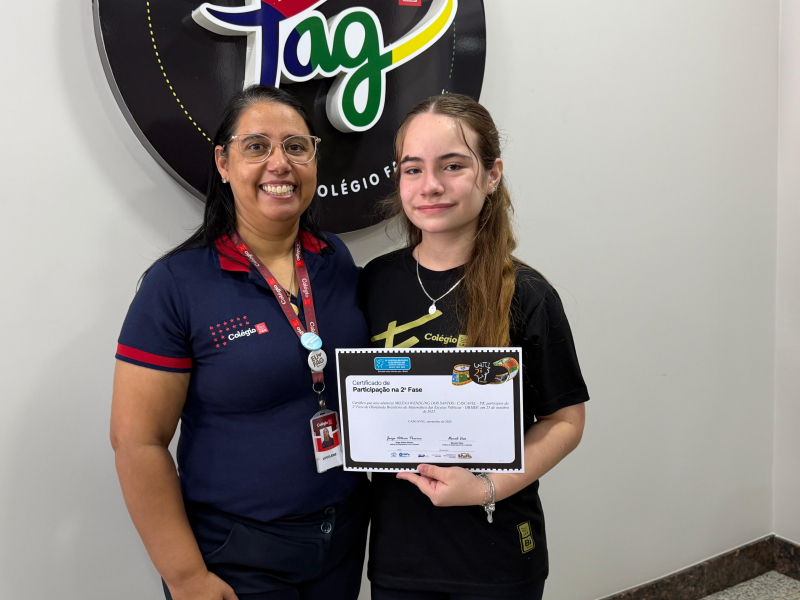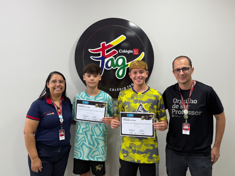 Nesta segunda-feira (23), os alunos do Colégio FAG que se destacaram na OBMEP 2025 receberam seus certificados. Benjamim Brazão Silva, Mateus da Silveira Deitos e Milena Wendling dos Santos se classificaram para a segunda fase da avaliação, representando o Colégio em outras etapas da prova.