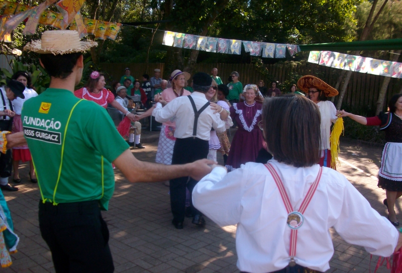 O Centro de Convivência Nair Ventorin Gurgacz recebeu a tradicional festa junina, realizada pelo grupo de idosos do programa Ação Integrada pela Cidadania. Os participantes puderam dançar a quadrilha usando trajes típicos de diferentes países. Isso porque o tema da festa deste ano foi Etnias. Cada par representou, por meio de seus trajes, a cultura de um país. "A festa junina proporciona, alegria, socialização e principalmente oportuniza os idosos a participar desta festa, resgatando valores e desejos", enfatiza Salete Chrun, coordenadora de Ação Social da FAG. Festa Junina Solidária Os idosos também participaram da 9º edição da Festa Junina Solidária, promovida pela Associação Comercial e Industrial de Cascavel (ACIC). A quadrilha, composta por 30 participantes, recebeu o prêmio destaque. O evento aconteceu na Igreja Nossa Senhora de Fátima, no bairro Cancelli.