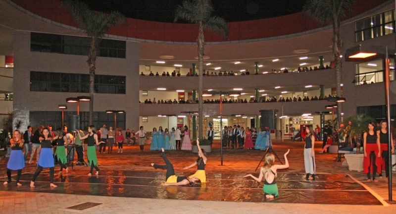 Os alunos da FAG e da Dom Bosco acabam de assistir a três apresentações de dança, na área de convivência do Bloco 02. A atividade faz parte da programação do 23º Festival de Dança de Cascavel. Intitulada "Mostra Aberta" a ação visa aproximar o público da arte. A próxima apresentação acontece na sexta-feira, dia 03, no Bloco 04. O Festival começou hoje e segue até o dia 10.