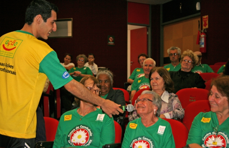 Os idosos do programa Ação Integrada pela Cidadania retornaram das férias de julho essa semana. No auditório do Bloco 4, o grupo iniciou a tarde com atividades lúdicas. O educador social do programa, Lucas Prates Chiarello, destacou que a intenção foi dar as boas vindas. "Nosso objetivo é incentivar os integrantes a busca hábitos saudáveis, refletindo em uma melhor qualidade e expectativa de vida", destaca Lucas, que é estagiário do curso de Educação Física da FAG. Na sequência, a turma assistiu ao filme "Rio". Para o segundo semestre a principal novidade é o auxilio de um grupo de nutricionistas. As profissionais são uma ajudinha extra para manter a saúde dos idosos em dia. "Assim vamos unir atividade física e uma alimentação ainda mais saudável, com dicas que eles possam usar em casa", conta a coordenadora do projeto, Salete Chrun. O programa é mantido pela Fundação Assis Gurgacz.