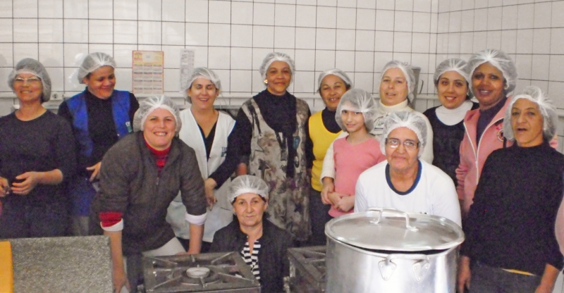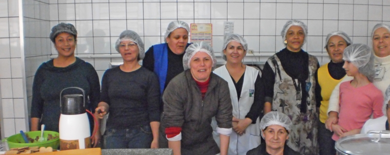 A egressa do curso de Nutrição, Daiane Mantovani, ministrou uma oficina para os colaboradores do Centro Estadual de Educação Profissional (CEEP) Pedro Boaretto Neto. O tema: cozinha escolar. A nutricionista falou sobre higiene e práticas culinárias de aproveitamento dos alimentos. Com o treinamento os profissionais puderam melhorar, ainda mais, a qualidade do lanche, além de aproveitar, de forma correta, a horta da instituição. A oficina contou com aula prática, em que foram preparados pratos nutritivos como: bolo integral de casca de banana com canela; torta salgada de talos, cascas e folhas de legumes e verduras; alfajor com bolacha recheado com brigadeiro de mandioca; e suco de couve com limão. A atividade reforça a importância do profissional na escola.