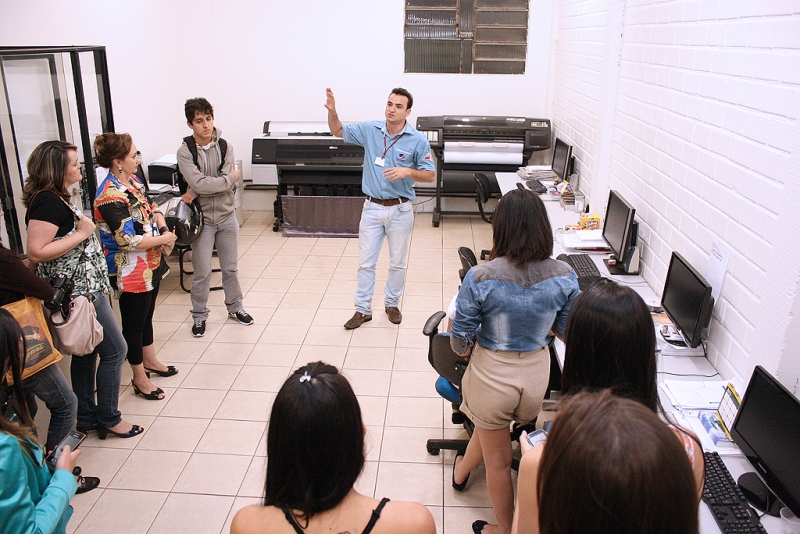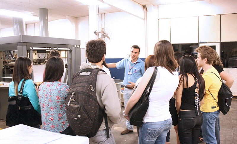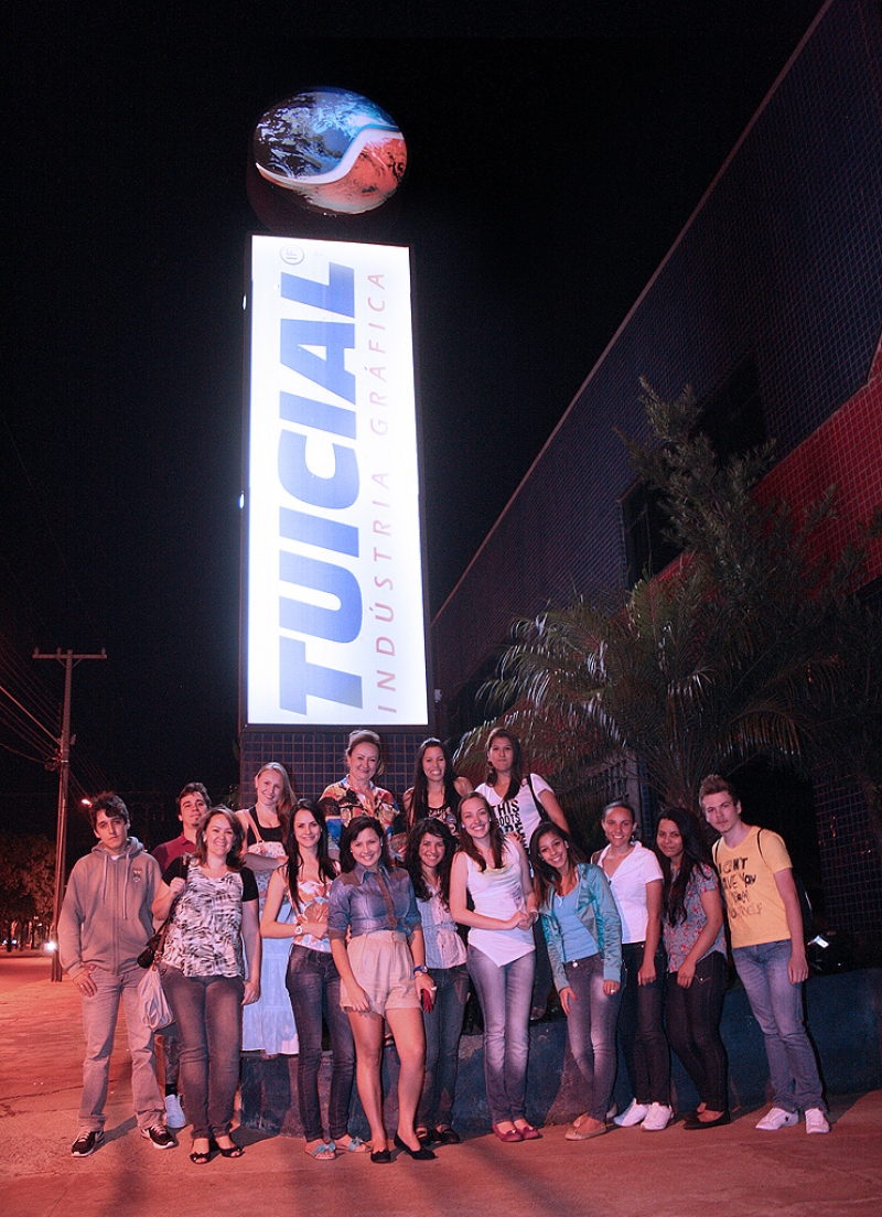 Os alunos do 4º e 6º período do curso de Jornalismo participaram de uma visita técnica à Gráfica Tuicial, na última semana. A atividade foi organizada pelo coordenador do curso, Ralph Willians de Camargo, e pelo professor Rodrigo Perim. O objetivo foi complementar o conteúdo visto em sala de aula, nas disciplinas de Editoração Gráfica e Produção Gráfica. "Conhecer o processo de materialização da peça, antes pensada no computador, é um passo importante para aproveitar cada vez mais as possibilidades que o mercado gráfico oferece", finaliza Rodrigo.