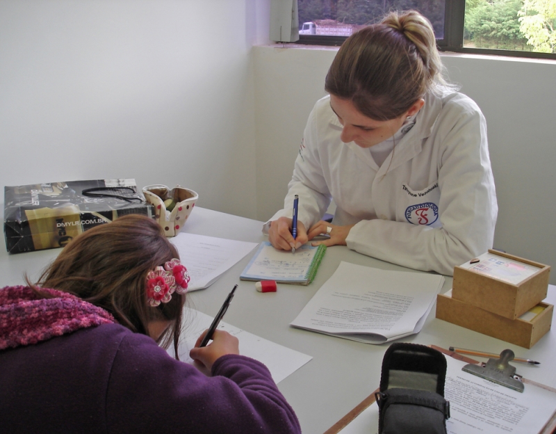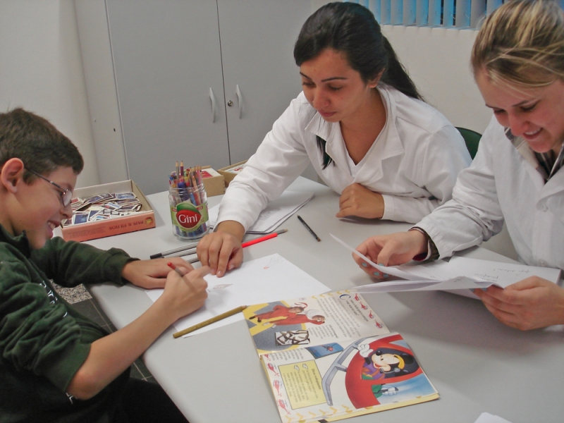 Os acadêmicos do 2º, 4º e 8º período do curso de Fonoaudiologia retomaram o projeto de extensão "Sons e Letras ? Relações entre a Linguagem Oral e a Linguagem Escrita". A atividade é organizada e orientada pela coordenadora do curso, professora Giovana Romero de Paula. A ação possibilita o atendimento fonoaudiológico às crianças que apresentam dificuldades no processo de alfabetização ou na comunicação oral. Participam da atividade alunos das escolas públicas municipais e estaduais. "Para os acadêmicos é uma oportunidade para vivenciar as situações clínicas que, invariavelmente, farão parte da sua atuação fonoaudiológica no futuro, além de possibilitar a aplicabilidade dos conhecimentos teóricos trabalhados em sala de aula", explica Giovana.