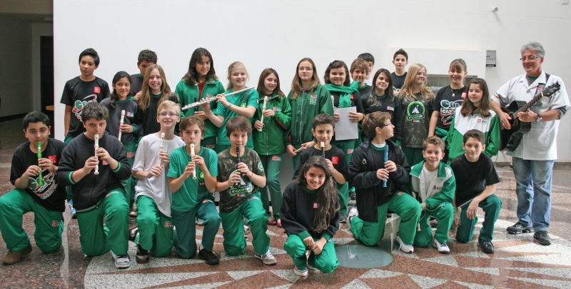 Estudantes tocaram flauta acompanhando o ritmo do violão do professor Aylson Dalferth