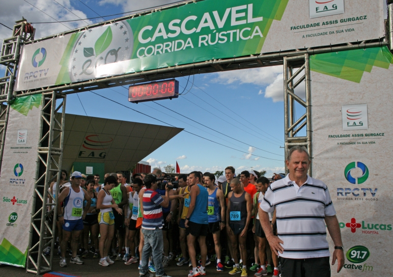A Faculdade Assis Gurgacz e a Rede Paranaense de Comunicação transformaram o campus da FAG em uma pista de corrida, na tarde deste sábado (13). Cerca de 800 atletas, profissionais e amadores, participaram da 3ª edição da Eco Cascavel Corrida Rústica. Para Assis Gurgacz, senador da República, o evento é motivo de orgulho. "O número de competidores cresce a cada edição, o que representa a consolidação da prova", enfatiza. Entre os veteranos Vimar Caus. Com 62 anos, o atleta participou de todas as edições da corrida. "Comecei a correr com 59 anos e encontrei no esporte uma forma de manter a saúde em dia. Sou atleta profissional, de Cascavel e prestigio a prova todos os anos", enfatiza. Um grupo, formado por profissionais da Marinha, de Foz do Iguaçu, também participou da competição. "Encontramos na Eco Cascavel uma forma de praticar o esporte e incentivar outras pessoas a participarem", enfatiza Marco Antônio Pacífico da Costa.