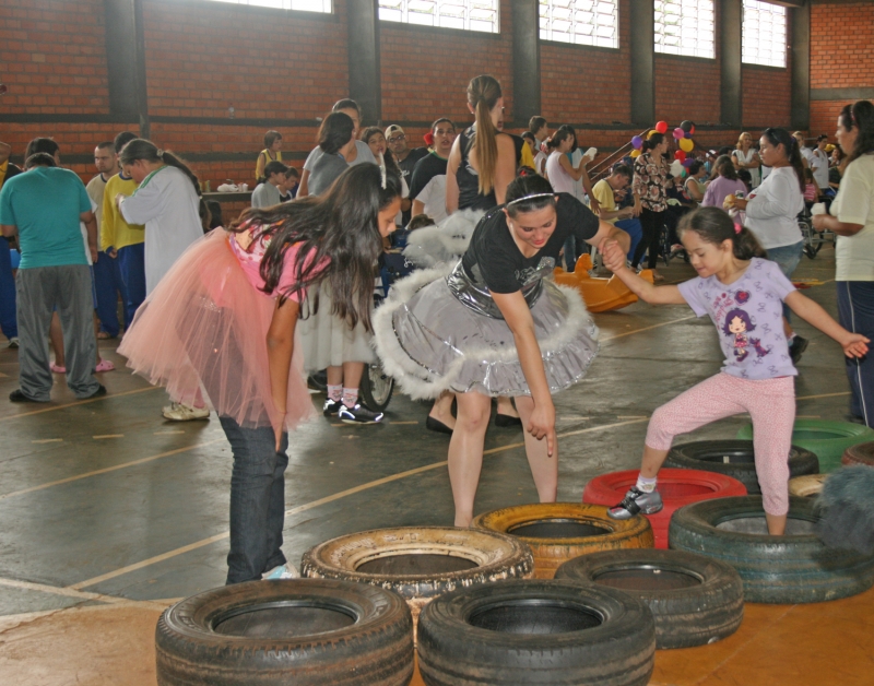 Mais de 10 mil crianças participaram das atividades, organizadas pelos acadêmicos do 4º e 6º períodos de Educação Física, em comemoração ao Dia das Crianças. As ações aconteceram em 15 escolas municipais, CMEIs e APAEs, de Cascavel e mais 25 estabelecimentos de ensino da região. Em cada escola os acadêmicos organizaram estações, assim as crianças, divididas em grupos, puderam participar de todas as atividades recreativas e de lazer. O objetivo foi proporcionar momentos de descontração e socialização entre os estudantes. "Os estagiários e professores orientadores não mediram esforços para que tudo que foi planejado pudesse ser executado com êxito, retribuindo um pouco da receptividade que encontramos nos campos de estágio, ao longo de 11 anos de parceria", enfatiza a professora Dirleia Sbardelotto. Elisangela Aparecida do Nascimento Salles, diretora da Escola Inglacir Lourdes Farina, ressaltou a importância dos estagiários de Educação Física. "Os alunos nos ajudam a resgatar brincadeiras que proporcionam as crianças uma infância mais saudável", destaca a professora. Para a acadêmica do 4º período, Adriana Gomes da Costa, a atividade auxiliou na formação profissional. "Todas as ações foram pensadas, mas quando chegamos aqui nem tudo correu conforme o planejado. É importante que o profissional esteja preparado para lidar com as adversidades", conta. A atividade fez parte da disciplina de Estágio Curricular Supervisionado.