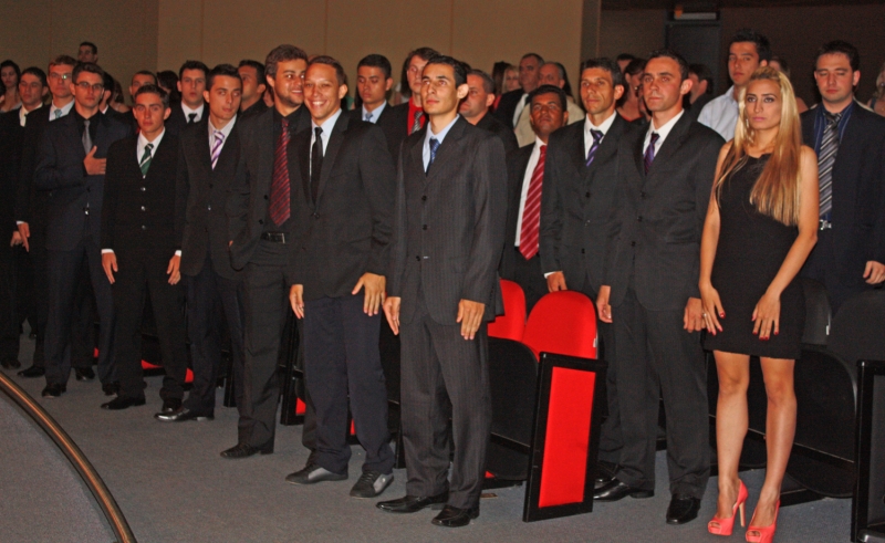 O curso de Formação de Árbitro de Futebol, promovido pelo Núcleo de Aperfeiçoamento Profissional, da FAG, em parceria com a Federação Paranaense de Futebol, formou sua primeira turma. A cerimônia aconteceu na última semana, no Anfiteatro da Reitoria. Os 38 alunos receberam seus diplomas, sob o olhar atento de seus familiares e padrinhos. O curso teve duração de seis meses, entre maio e outubro. Todas as aulas teóricas e práticas aconteceram no campus da FAG. Evandro Rogério Roman, secretário de Estado do Esporte, foi o paraninfo da turma. "Trabalhei por 10 anos na FAG, faço parte da família, por isso é um orgulho participar dessa celebração. O que desejo à todos é força de vontade e determinação para alcançarem seus objetivos", declarou o Secretário. Assis Marcos Gurgacz, também participou da cerimônia representando a FAG. "Com a formação de novos profissionais vamos ajudar a transformar o esporte no Paraná", enfatiza.