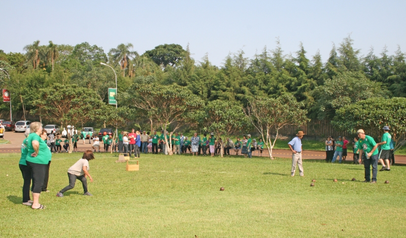 No programa Ação Integrada pela Cidadania, da Fundação Assis Gurgacz, as comemorações do mês do idoso encerraram com o 2º Campeonato de Bocha Campeiro. A atividade aconteceu na última semana e reuniu mais de 130 participantes. Além da terceira idade também estiveram presentes os "afilhados". "Cada idoso apadrinhou um amigo ou vizinho que vai ficar em seu lugar no programa. Isso acontece porque todo fim de ano formamos uma turma para que novos integrantes participem do projeto", explica a coordenadora, Salete Chrun. O objetivo é que o idoso que vai integrar o programa já esteja habituado às atividades. "São eles que selecionam o novo integrante, respeitando as regras para a escolha. Essa é uma forma de cumprir nosso papel social", acrescenta Salete. Lucinda Lahar, de 60 anos, veio de Juvinópolis para participar do campeonato. "Viemos em um grupo para comemorar o mês do idoso, fazer novos amigos e participar do campeonato", conta Lucinda. Um almoço, servido pela presidente da Fundação, Nair Ventorin Gurgacz, e um jogo de bingo, também fizeram parte da programação. "Para encerrar o mês do idoso fiz questão de colocar a mão na massa e cozinhar para os meus velhinhos", destaca Nair. O presidente da FAG, Assis Gurgacz, também participou da comemoração.