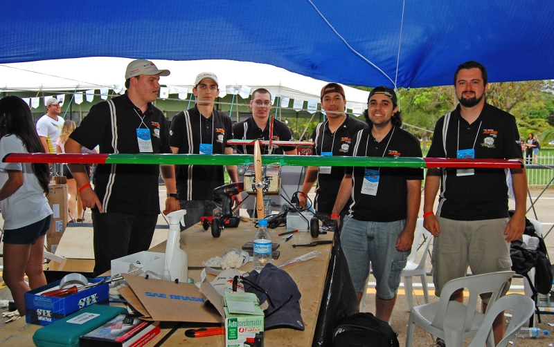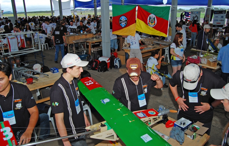 Os alunos do curso de Engenharia Mecânica estiveram em São José dos Campos, entre os dias 1 e 4 de novembro, para participar da competição SAE BRASIL AeroDesign, que aconteceu na pista de testes da Embraer. Os projetos foram desenvolvidos com a orientação do professor Roberson Parizotto, que explica qual o objetivo da competição. "O SAE AeroDesign é um desafio lançado aos estudantes de Engenharia que tem como principal objetivo propiciar a difusão e o intercâmbio de técnicas e conhecimentos de Engenharia Aeronáutica entre futuros profissionais da engenharia da mobilidade, por meio de aplicações práticas e da competição entre equipes", explica. "Ao participar da competição o aluno se envolve com um caso real de desenvolvimento de projeto aeronáutico, desde sua a concepção, projeto detalhado, construção e testes", acrescenta o professor. O acadêmico Bruno Quiocca Americano foi o capitão da equipe. "Vivenciamos na prática a rotina de desenvolvimento de um projeto e acredito que conseguimos realizar um excelente trabalho em equipe", enfatiza.