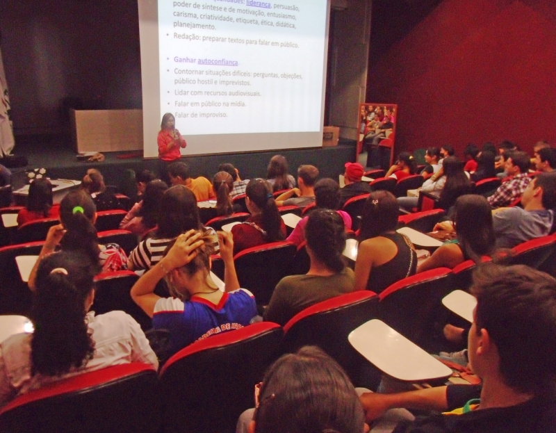 Os adolescentes que fazem parte do Programa de Aprendizagem Profissional Jovem Aprendiz (PAJA), mantido pela Fundação Assis Gurgacz, participaram de um curso de oratória, ministrado pela coordenadora do programa, professora Salete Chrum. Com o tema "Comunicação eficaz e o profissional do século XXI", os alunos aprenderam técnicas para falar de forma convincente, eficaz e a trabalhar a expressividade da voz. As dicas serão usadas pelos integrantes do programa no 2º Concurso de Oratória, que acontece no dia 01 de dezembro, no auditório do Bloco 4 da FAG.