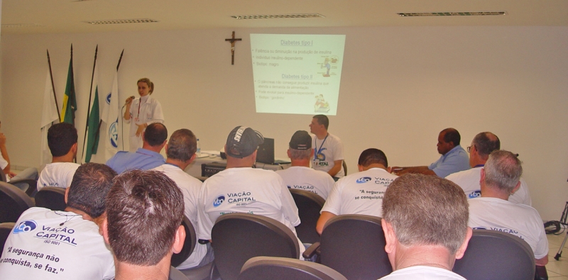 O curso de Nutrição participou da Semana Interna de Prevenção de Acidentes de Trabalhos (SIPAT), da Viação Capital do Oeste, com o tema :Alimentação para controle e prevenção do Diabetes. Cerca de 180 funcionários participaram da atividade ministrada pela professora Raquel Goretti Eckert. O tema foi proposto pela comissão que promoveu o evento, depois de perceber um aumento no número de colaboradores com alteração de glicemia, constatada nos exames periódicos. "É importante orientar as pessoas sobre a forma de alimentar-se, sem privações excessivas, porém, mantendo um bom controle glicêmico", explica a coordenadora do curso, professora Nanci Rouse Teruel Berto. Todos os colaboradores doaram alimentos não perecíveis, que foram repassados para a Uopeccan. "Além de uma ação educativa, foi realizada uma ação social que beneficiou muitas famílias de pacientes em tratamento", finaliza a professora Raquel Goreti Eckert.