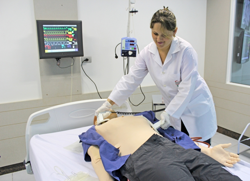 Alunos de Enfermagem participam de aula no novo laboratório da FAG