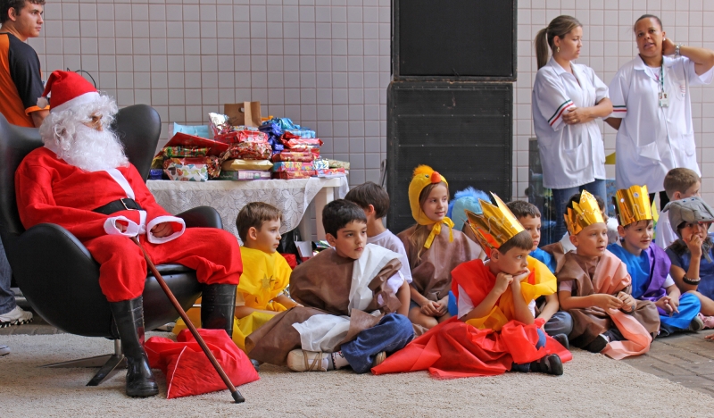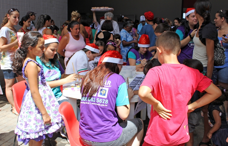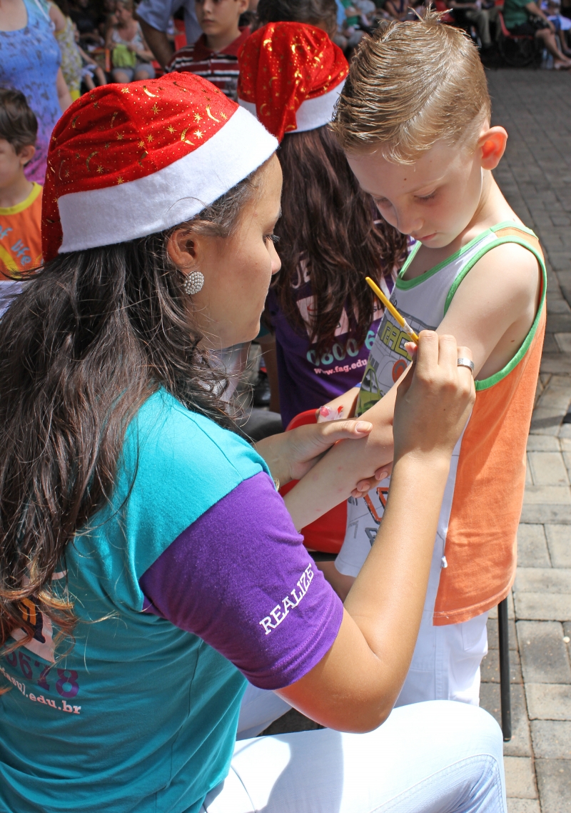 Já é tradição, todo fim de ano as Clínicas FAG promovem uma confraternização com o objetivo de reunir pacientes, acadêmicos de Fisioterapia, Nutrição, Fonoaudiologia, Estética, Medicina, Psicologia e Farmácia, professores, coordenadores e a equipe multidisciplinar, para celebrar as conquistas. Mais de 500 pessoas participaram da festa, que aconteceu na tarde de hoje (05), na área de convivência do Bloco 04. Entre as atividades: apresentação dos alunos do Colégio FAG/COC, que cantaram músicas de Natal, pintura, pescaria, estoura o balão, além de sorteios. O momento mais aguardado pelos pequenos foi a chegada do Papai Noel, que entregou as crianças presentes. Denise Alves levou o filho Arthur. O menino é atendido na Clínica há dois anos. "Antes ele não falava, não andava e tinha muita dificuldade para confiar em outras pessoas. Agora, está muito melhor, só tenho motivos para comemorar", conta a mãe. Quem também participou da festa foi o diretor acadêmico da FAG, professor Afonso Cavalheiro Neto. "Esse é um momento de reflexão e hora de renovar as forçar para alcançar os próximos objetivos", aconselha.