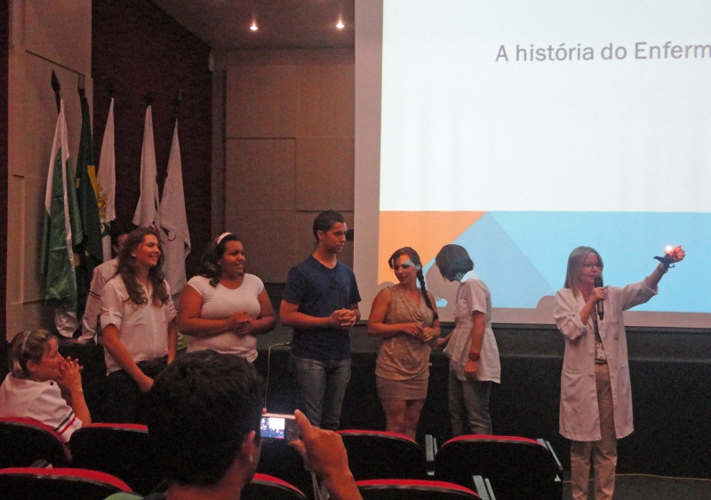 Professores repassaram aos graduandos a lâmpada, que é o símbolo da profissão e representa cuidado e conhecimento