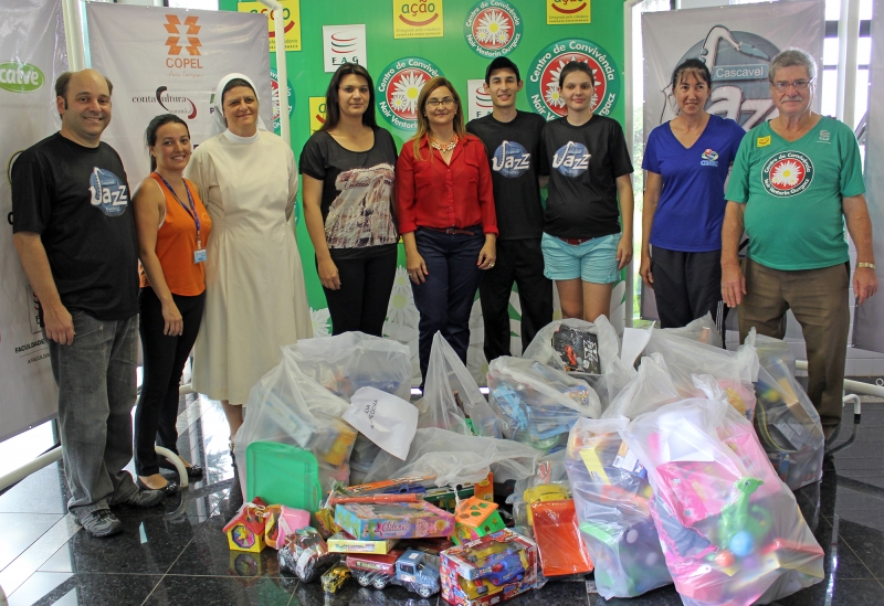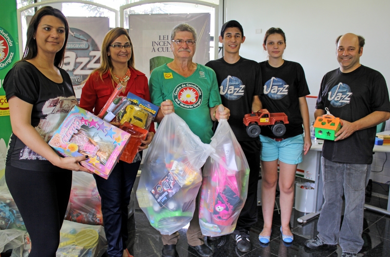 A Fundação Assis Gurgacz e a Fundação Canal 20 repassaram ao Lar dos Bebês, Centro de Estudos do Menor e Integração na Comunidade (CEMIC), Recanto da Criança e Programa Ação Integrada pela Cidadania, os brinquedos arrecadados no Cascavel Jazz Festival. "Os mais de 500 itens vão fazer a alegria de crianças e adolescentes neste Natal. Um pequeno gesto para quem doa, que os pequenos recebem com muita alegria", enfatiza a coordenadora da Fundação Assis Gurgacz, Salete Chrun. O Cemic atende mais de 300 crianças e de acordo com a diretora do centro, Vani Giordani, os brinquedos chegaram no momento certo. "Para muitos meninos e meninas esse será o único presente de Natal. Não teríamos recursos para comprar uma lembrancinha para cada um deles, por isso somos muito gratos pela doação. Além disso, é uma forma de incentivar o brincar", destaca. Para o diretor musical, Luciano Veronese, o Cascavel Jazz Festival reúne "pessoas que gostam de boa música e de ajudar o próximo".