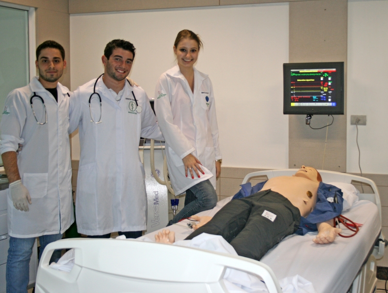 O laboratório de Habilidade é a novidade do curso de Medicina, da FAG. No espaço os alunos podem simular o atendimento a um paciente, usando um modelo didático. O boneco fala, emite sons, tem pulsação e reproduz os sintomas de um infarto, por exemplo. De acordo com o coordenador adjunto do curso de Medicina, professor José Ricardo Paintner Torres, o que difere o modelo de outros é que ele exige que aluno pense antes de agir. "O boneco foi programado para ter um infarto, o estudante faz o procedimento correto, mesmo assim ele não responde, então é preciso pensar qual o próximo passo, observar a evolução do paciente e medicá-lo conforme os sintomas". Tudo é controlado por computador. O professor programa o simulador para responde, ou não aos estímulos e medicações aplicadas. A sala é composta por um auditório, com sistema de vídeo e áudio, para que os alunos que não estão participando do procedimento possam acompanhar. Uma sala com equipamentos de Unidade de Terapia Intensa (UTI) e um espaço com três computadores, que controlam o modelo. Com toda essa tecnologia o aluno pode praticar, antes de chegar aos últimos anos de faculdade. "Antes o estudante teria contato com o paciente somente no quinto e sexto ano. Agora, pode começar ainda no primeiro ano", finaliza o professor.