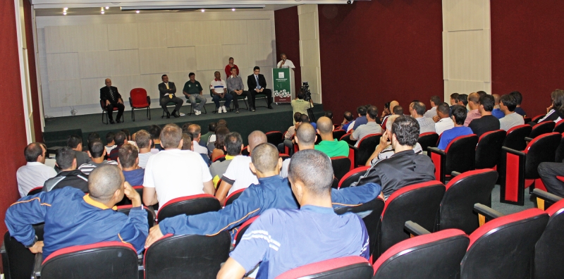 Começou hoje (16), no campus da FAG, a Pré-temporada de árbitros e assistentes que compõem o quadro da Federação Paranaense de Futebol. A cerimônia de abertura aconteceu agora pela manhã, no auditório do Bloco 01. Participaram da solenidade o diretor de árbitros do Paraná, Afonso Vitor de Oliveira; o árbitro FIFA da Federação Paraguaia, Carlos Amarilla; o assistente FIFA e instrutor da Federação Paraguaia, Manoel Bernal; o advogado da ANAF (Associação Nacional dos Árbitros de Futebol) e especialista em legislação esportiva, Giuliano Bozzano; e o presidente da Associação Profissional de Árbitros de Futebol, Roberto Braatz. Os 20 árbitros e 40 assistentes ouviram com atenção as recomendações de Afonso Vitor de Oliveira. "Aproveitem a proximidade com esses profissionais de renome para esclarecer dúvidas e aprender muito", enfatizou. Roberto Braatz, presidente da Associação Profissional de Árbitros de Futebol, aproveitou a oportunidade para falar da parceria com a FAG. "Agradeço a direção pela oportunidade de realizar, mais uma vez, as atividades da Pré-temporada em um local com toda essa estrutura. A FAG além de nossa parceira é também uma de nossas patrocinadoras", destacou. Palestras Na parte da tarde, os profissionais participam de uma palestra sobre Controle do Jogo, que será ministrada pelo árbitro FIFA da Federação Paraguaia, Carlos Amarilla. Na sequência o assistente FIFA e instrutor da Federação Paraguaia, Manoel Bernal, fala sobre a participação do assistente e do árbitro no jogo. As atividades seguem até sexta-feira (18).