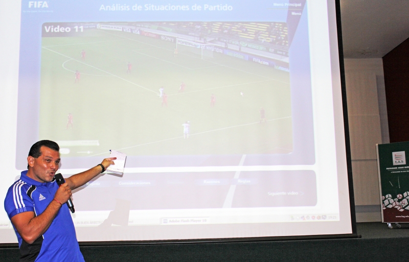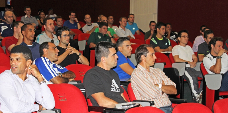 Hoje (16), na parte da tarde, árbitros e assistes da Federação Paranaense de Futebol participaram de duas palestras, no Auditório do Bloco 01. A primeira foi sobre Controle de Jogo, ministrada pelo árbitro FIFA e Mundialista, Carlos Amarilla. O paraguaio, que já que abitou Copa do Mundo, finais de Copa América e Taça Libertadores, apresentou vídeos com situações de jogo. "Para ser um bom árbitro é preciso trabalhar muito, tanto a parte física, quanto técnica. Meu objetivo foi passar um pouco de minhas experiências, com forma de esclarecer as dúvidas", avaliou. Na sequência o assistente FIFA e instrutor da Federação Paraguaia, Manoel Bernal, falou sobre a participação do assistente e do árbitro no jogo. Quinta-feira Amanhã (17) os 60 profissionais seguem em sala de aula. Na parte da manhã a palestra será ministrada por Altemir Hausmann. Em vinte anos de carreira o assistente já apitou mais de 800 jogos, incluindo dez Libertadores e duas Copas do Mundo. Na parte da tarde, árbitros e assistentes participam de treino prático, no campo de futebol da FAG.