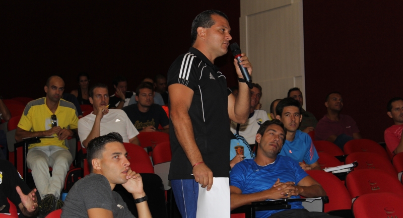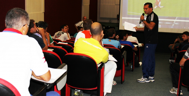 Hoje, a palestra foi com o doutor em educação física, árbitro FIFA e secretário de Esportes do Paraná, Evandro Rogério Roman