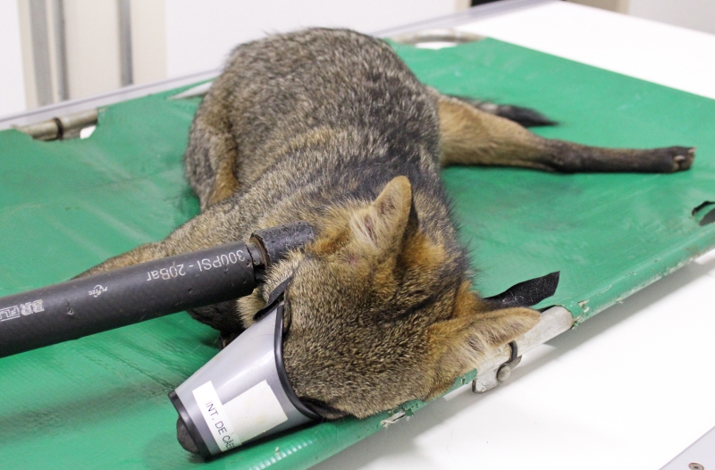 Um cachorro-do-mato passou por exames, hoje (20), no Hospital Veterinário da FAG. O animal foi encontrado por popular, as margens da BR 277, próximo a Ibema. A Polícia Rodoviária Federal de Catanduvas foi acionada e recolheu o cachorro. A suspeita da PRF é que bicho tenha sido atropelado. No Hospital ele passou por exames. "Constatamos por meio de um Raio-X que a fêmea está com fraturas, a prioridade é estabilizar o paciente para que entre com o menor risco em cirurgia", conta o professor Felippe Azzolini.
