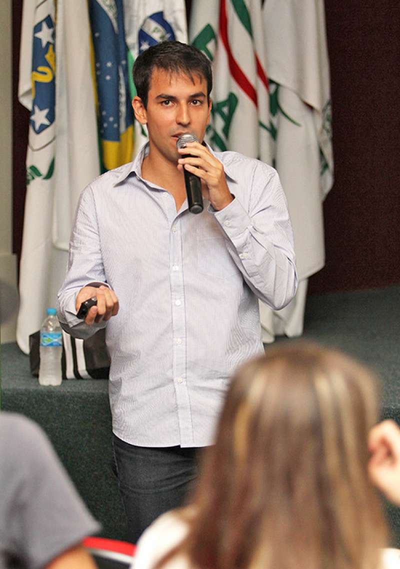 Na última sexta-feira (23), o curso de Publicidade e Propaganda promoveu uma aula magna com o egresso e assistente de planejamento da Agência Talent, de São Paulo, Marcus Bastianello. O Publicitário contou como sua formação na FAG auxiliou para a realização de um projeto traçado ainda na graduação, fazer parte da equipe da Agência Talent. "Há exatamente quatro anos atrás eu estava nos bancos acadêmicos da FAG, como vocês agora e nunca desisti de alcançar uma boa posição no mercado publicitário", conta o profissional. O egresso destacou que a Faculdade Assis Gurgacz não fica devendo para instituições de ensino de grandes centros. "Aqui dentro, todos tem a possibilidade de ocupar um cargo em agências de grande porte no País, basta investir em seu currículo e aproveitar todas as oportunidades que a instituição oferece", incentivou o publicitário.