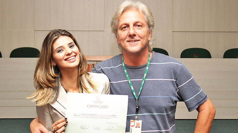 Na última segunda-feira (25), o curso de Jornalismo promoveu uma Aula Magna com egressos da FAG. Rafael Guareski, formado em 2007 e Jéssica Moreira, formada em 2012. Os jornalistas falaram sobre a carreira profissional e acadêmica. Rafael trabalha atualmente com Assessoria de Imprensa e ressaltou aos acadêmicos a importância dos projetos experimentais realizados na graduação. "Entrei no mercado de trabalho logo após a graduação através do projeto da Revista Verbo da FAG, na qual eu participei", conta Rafael. Já a jornalista, recém-formada, Jéssica Moreira é repórter do programa Vitrine Revista, da TV Tarobá. A profissional contou como os estágios realizados na TV FAG ajudaram a conquistar a vaga. "Por meio dos estágios na faculdade, realizava entradas ao vivo nos Seminários de Práticas e vestibulares, agora, mesmo com pouca experiência nessa nova função, já faço essas atividades com mais facilidade", destaca a profissional.