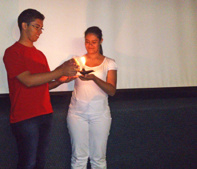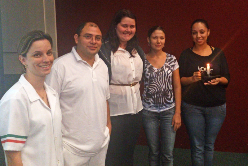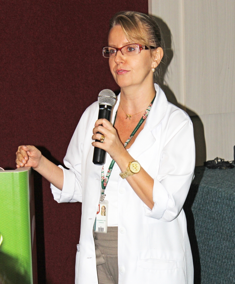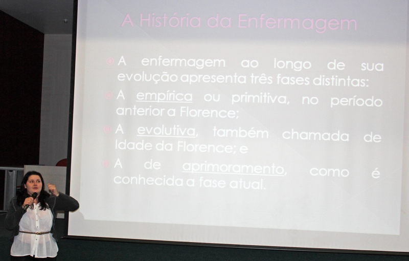 O curso de Enfermagem promoveu uma aula especial para recepcionar os calouros. Na atividade os veteranos contaram um pouco da história da profissão e egressos convidados falaram de suas experiências profissionais. Depois da conversa a coordenadora, Adriana Romão, repassou aos alunos a lâmpada, símbolo do curso. "Entreguei aos estudantes do 7º período, que repassaram aos alunos do 5º, do 3º até chegar aos alunos do 1º período. A ação representa a importância de manter o cuidado e o conhecimento sempre presentes", explica a professora. Garazi Fernandino e Cleoni Taborda, do Núcleo de Relações Internacionais (NRI), também participaram da atividade e falaram aos estudantes sobre as ações desenvolvidas pelo núcleo e das oportunidades de bolsas de estudos no exterior. "É muito importante o contato dos acadêmicos com os programas no exterior logo no início da graduação", afirma a professora Alessandra Reis.