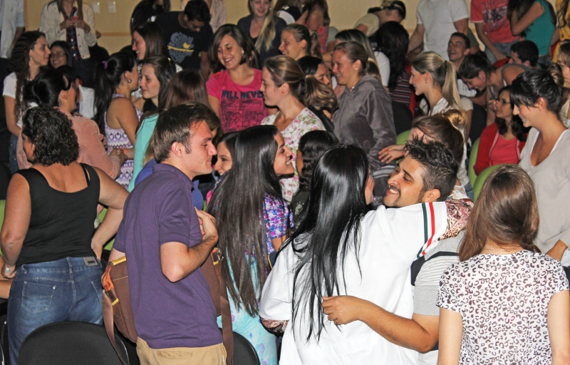 Calouros dos cursos de Direito, Educação Física, Enfermagem, Medicina, Ciências Biológicas, Jornalismo, Publicidade e Propaganda, Fonoaudiologia, Letras, Nutrição, Pedagogia e Psicologia, participaram do "Fórum Acadêmico - Atitude Universitária", organizado pelo Núcleo de Atendimento ao Estudante (NAE). As turmas se reuniram no Anfiteatro da Reitoria para receber as boas-vindas do diretor geral, professor Sérgio de Angelis. "Para ser universitário é necessário desenvolver o senso crítico, adotar uma postura de respeito e responsabilidade", aconselhou o diretor. Em seguida, os alunos receberam instruções da coordenadora do NAE, professora Patrícia Radaelli sobre como estão organizadas as instituições FAG e Dom Bosco, sobre os setores com os quais os acadêmicos terão mais contato no decorrer da graduação e sobre como usufruir de toda esta estrutura com responsabilidade. A professora ressaltou o trabalho conjunto entre os setores administrativos e pedagógicos e a necessidade da participação efetiva dos discentes para uma formação de excelência. Na sequência o diretor acadêmico, professor Afonso Cavalheiro Neto, foi o responsável pela palestra "Primeiros Passos Universitários", e falou sobre motivação e realidade do mercado de trabalho de maneira lúdica e divertida. "Os alunos precisam estar conscientes que cada dia da graduação é importante para formação de um profissional qualificado", ressaltou o diretor. Os calouros dos demais cursos devem participar das atividades nas próximas semanas.