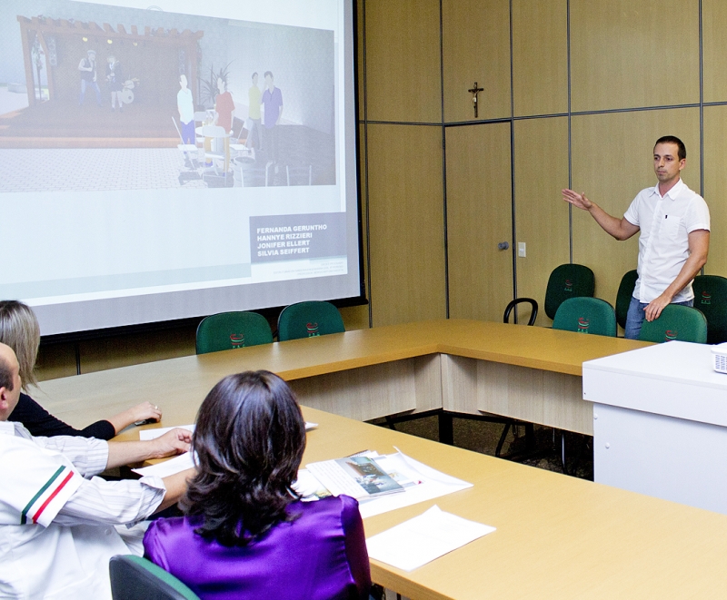 Os acadêmicos do 6° e 7° período do curso de Engenharia Civil apresentaram à diretora administrativa da FAG, Jaqueline Gurgacz Ferreira, projetos desenvolvidos na disciplina de Madeiras, que contemplam o campus da FAG. De acordo com a coordenadora do curso, professora Débora Felten, a disciplina mescla teoria e prática. "A partir dessa apresentação a direção nos autorizou a integrar ao campus da FAG as obras executadas durante a disciplina, ministrada pelo professor Sérgio Antônio Miotta", conta. Os primeiros projetos são direcionados ao Centro de Convivência Nair Ventorin Gurgacz e ao bosque da faculdade, onde serão dispostos os pergolados e decks construídos pelos estudantes. A diretora administrativa, Jaqueline Gurgacz Ferreira, parabenizou os alunos pela qualidade dos projetos. "Os trabalhos estão ótimos. Parabéns pela excelência dos projetos e dedicação do professor Miotta e dos acadêmicos. A atividade comprova que estamos no caminho certo para a formação de profissionais qualificados, que irão assumir os melhores lugares no mercado de trabalho", parabeniza a Diretora.