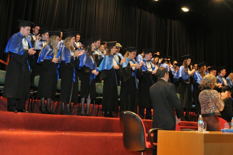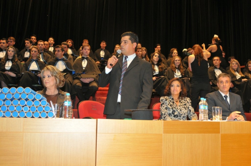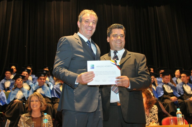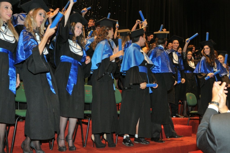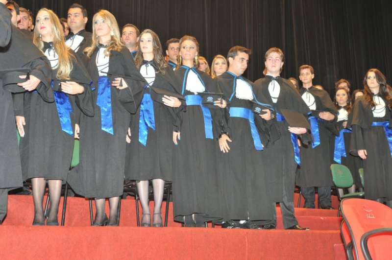 A colação de grau dos 54 alunos do curso de Administração encerrou a temporada de formaturas da FAG e Dom Bosco. A solenidade aconteceu no Anfiteatro da Reitoria e foi presidida pelo diretor acadêmico, professor Afonso Cavalheiro Neto. A turma escolheu o professor Mario Hermoso como paraninfo. O patrono foi o professor Roberto Carlos Baetas Frias. O nome de turma escolhido foi o professor Cristiano Medeiros. Ao todo, foram realizadas 16 sessões de colação de grau, com formandos de 27 cursos. Para o diretor geral, Sérgio de Angelis, as diplomações representam a concretização do ato de educar. "Para as instituições o sentimento é de dever cumprido. É gratificante devolver esses alunos à sociedade como cidadãos conscientes, atuantes e capazes de contribuir com a comunidade", enfatiza De Angelis. O diretor acadêmico das faculdades, professor Afonso Cavalheiro Neto, destacou o número expressivo de alunos. "FAG e Dom Bosco concretizam seu compromisso social quando apresentam profissionais preparados para as exigências do mercado de trabalho", enfatiza o diretor. "Mas esse não é um momento de despedida já que grande parte de nossos acadêmicos permanecem na instituição por meio dos cursos de Pós-Graduação", ressalta Afonso.