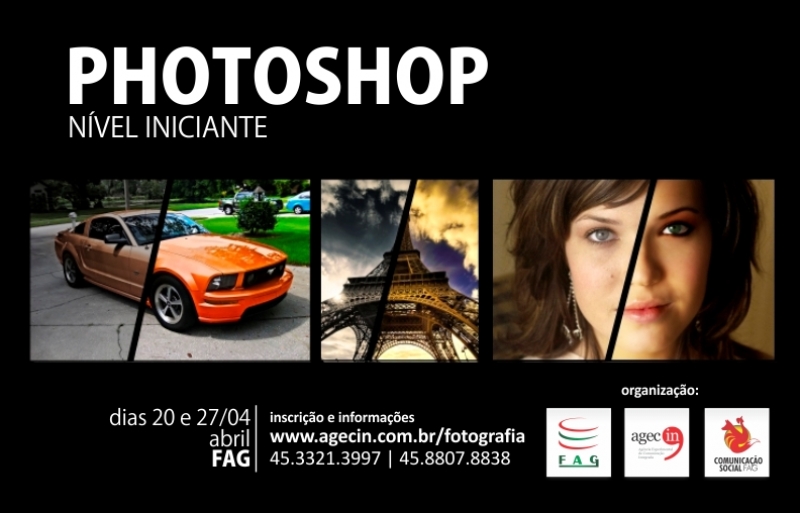 O curso de Fotografia da FAG amplia suas atividades e oferece o curso de tratamento de imagens em Photoshop (Nível Iniciante). As aulas acontecem nos dias 20 e 27 deste mês, das 8h às 17h, na Agência Experimental de Comunicação Integrada (AGECIN), que fica no Bloco 2. As aulas serão ministradas pelo professor Rodrigo Perim Santos, graduado em Ciência da Computação e especialista em MBA em Marketing e Propaganda. Atualmente Rodrigo é gerente de impressão da Tuicial Indústria Gráfica e professor titular da FAG. Tem experiência na área de Comunicação, com ênfase em Propaganda Comunicação Visual e Impressa e Designer Gráfico. Além disso, Rodrigo já trabalhou em Agências de Publicidade e possui diversos cursos na área de tratamento de imagens em São Paulo e Curitiba. O objetivo do curso é familiarizar o aluno com o universo do tratamento de imagem, ensinar técnicas, dar dicas e apresentar possibilidades de utilização do Photoshop. Além disso, o participante também fará exercícios práticos em ambientes externos e dentro do laboratório de informática. As inscrições podem ser feitas pelo site www.agecin.com.br/fotografia. Outras informações podem ser obtidas no telefone (45) 3321-3997.
