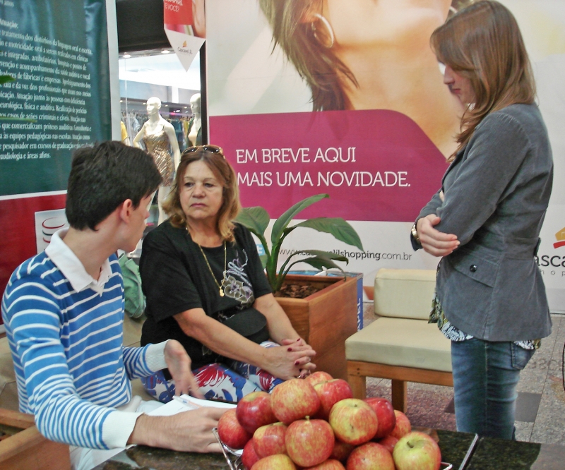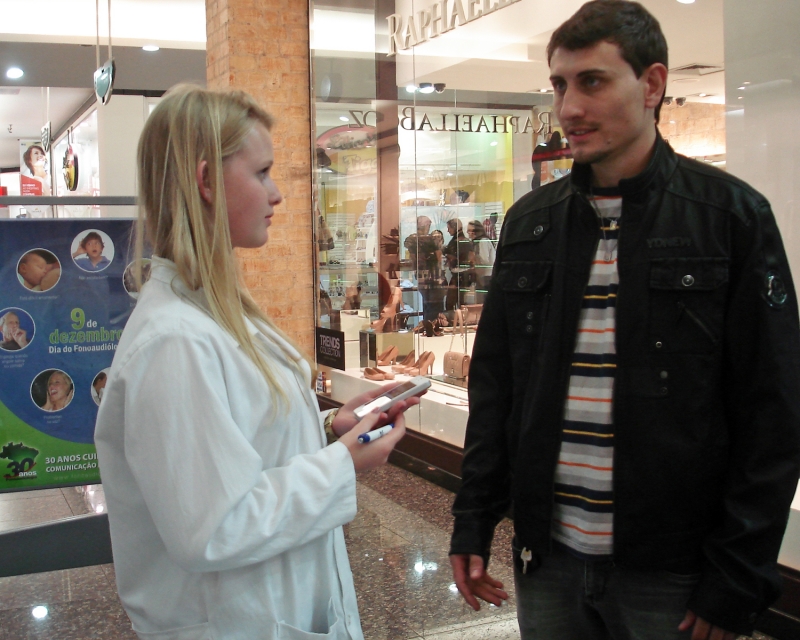 Os acadêmicos do curso de Fonoaudiologia e a coordenação promoveram uma atividade especial em alusão ao Dia Mundial da Voz. Na ação, que aconteceu no Cascavel JL Shopping, foram desenvolvidas avaliações vocais, distribuição de material informativo e orientações sobre higiene vocal. Para a coordenadora do curso, professora Giovana Romero Paula, a atividade foi bem aceita pelo público. "Ações como essa são importantes porque possibilitam o acesso à informação ao público em geral. Afinal, cuidar da saúde vocal também deve fazer parte da preocupação com a qualidade de vida", conta a professora.
