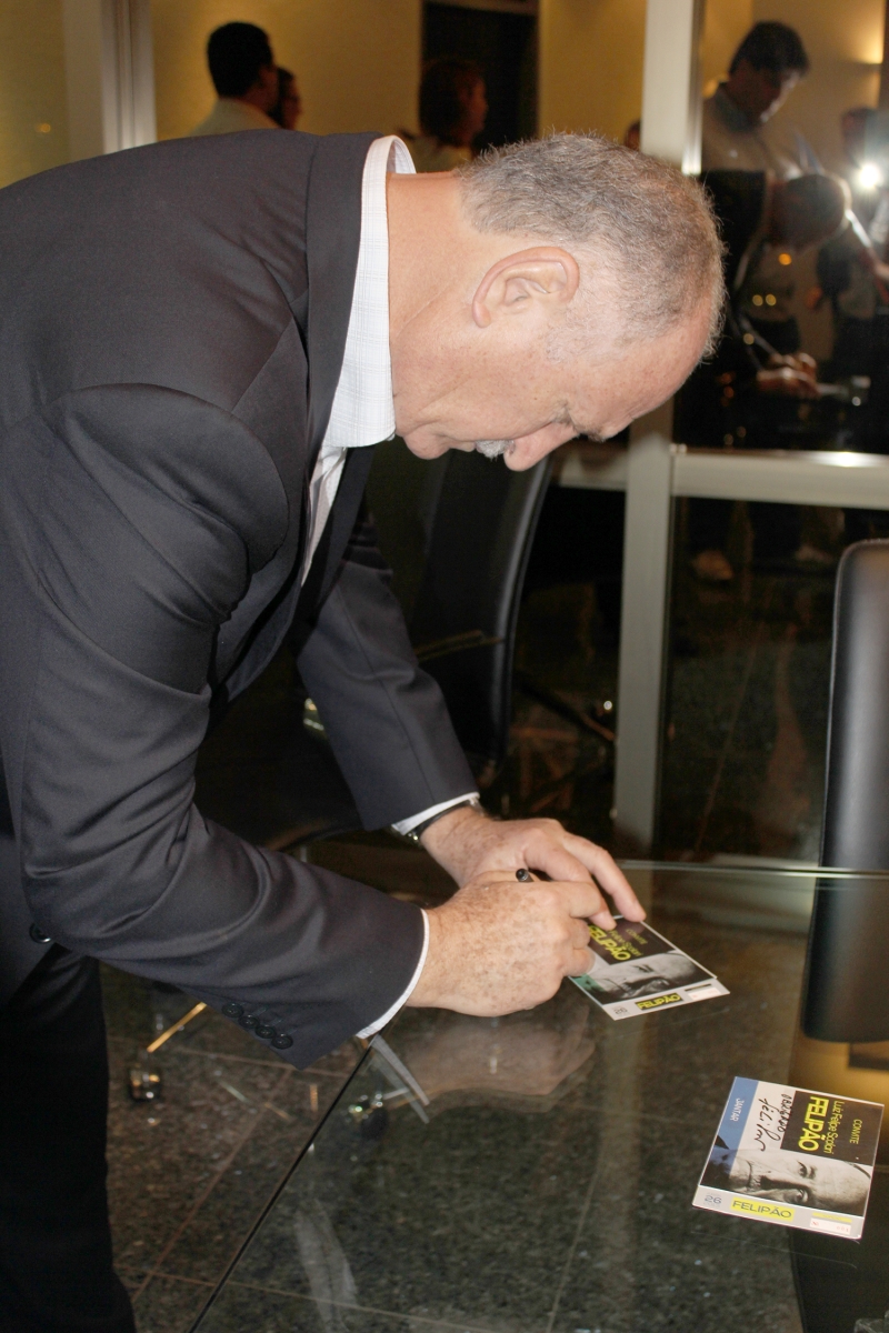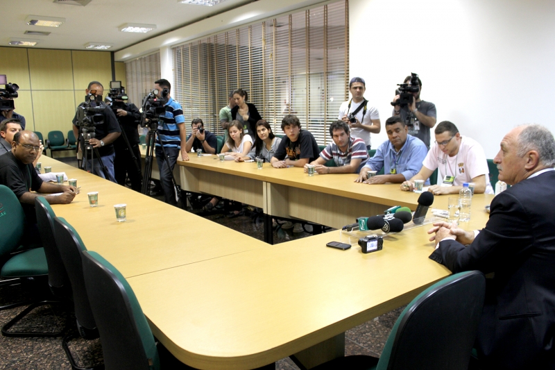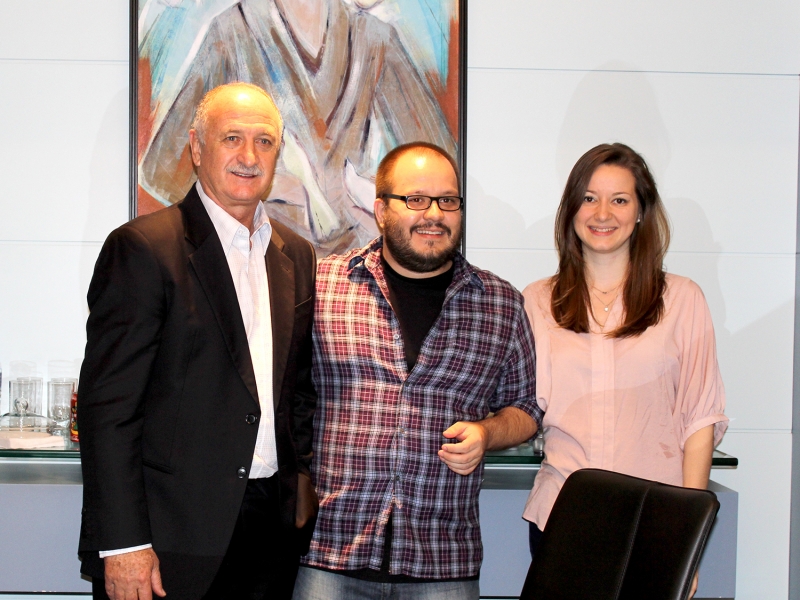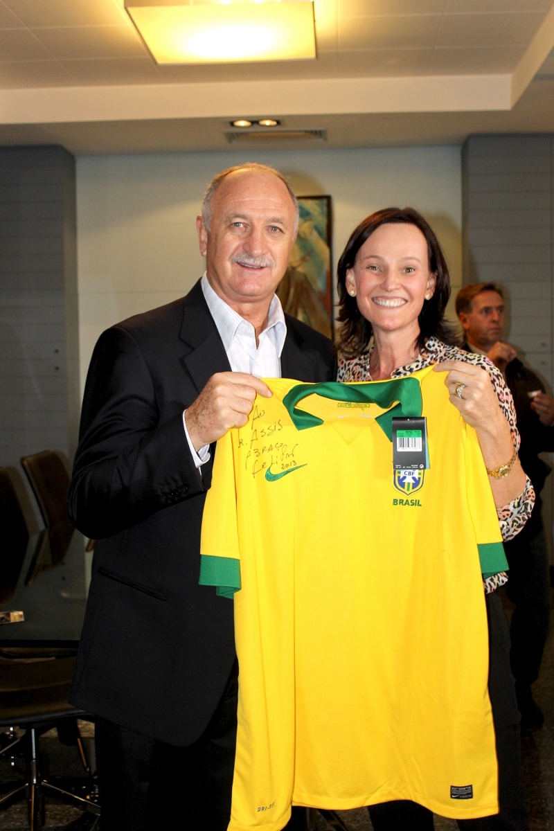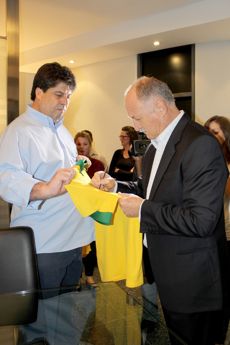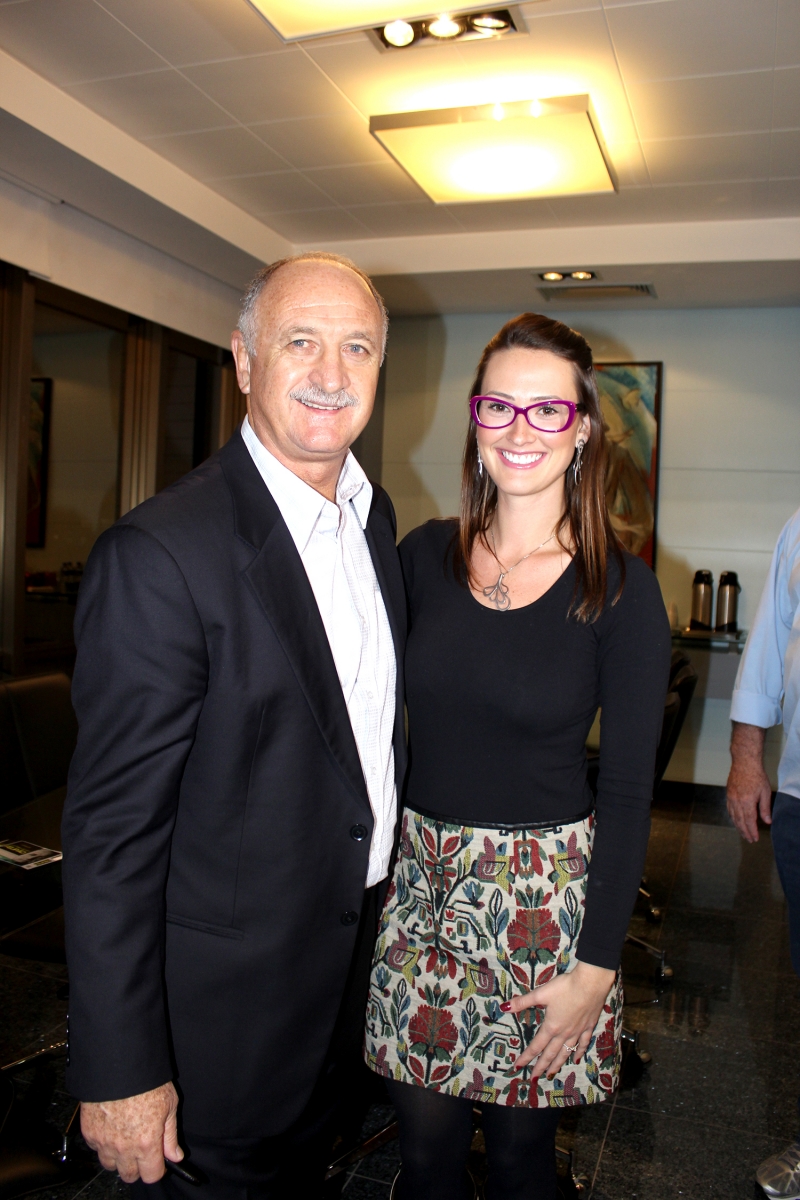 Com o tema "Caminhos e Conquistas", Luiz Felipe Scolari, técnico da Seleção Brasileira de Futebol, começou sua palestra contando suas primeiras experiências profissionais. Mais de 900 pessoas lotaram o Anfiteatro da Reitoria. Ao chegar a faculdade, Felipão recebeu uma homenagem do instituidor da FAG, Assis Gurgacz e da presidente da Fundação, Nair Ventorin Gurgacz. "É uma honra recebê-lo em nossa casa. Seja muito bem vindo. Será um prazer poder ajudar um amigo em comum", comentou Assis Gurgacz, referindo-se a Edgar Schmidt, já que toda verba arrecadada na palestra e no jantar será revertida ao comentarista gaúcho, que sofreu um AVC (Acidente Vascular Cerebral), em janeiro. Também participaram da cerimônia, o diretor geral, professor Sérgio de Angelis, o diretor acadêmico, professor Afonso Cavalheiro Neto, o coordenador do curso de Educação Física, Vitor César Moreira, e o diretor do grupo Catve, Jorge Guirado. Felipão elogiou o campus da FAG. "São poucas as faculdades que disponibilizam aos seus alunos um bosque, comum em universidades do exterior. Estou muito bem impressionado com toda essa estrutura", destacou. TV FAG Em seguida, o técnico da Seleção, conversou com a acadêmica do curso de Jornalismo e repórter da TV FAG, Adriana Ibba. Para o programa FAG Entrevista, Felipão falou sobre sua carreia e deu um recado. "Nosso principal objetivo é que todos tratem a Seleção como nossa Seleção e não a Seleção brasileira", destacou. Scolari, também conversou com os jornalistas de Cascavel e Região, em uma Coletiva de Imprensa.
