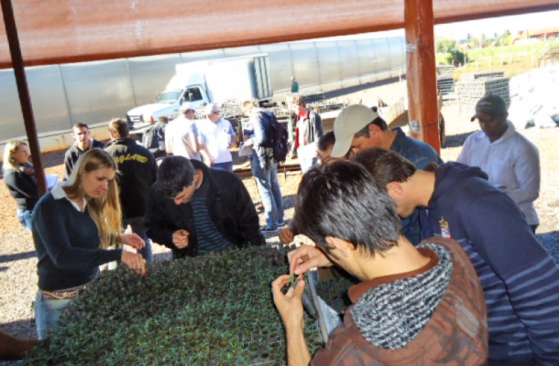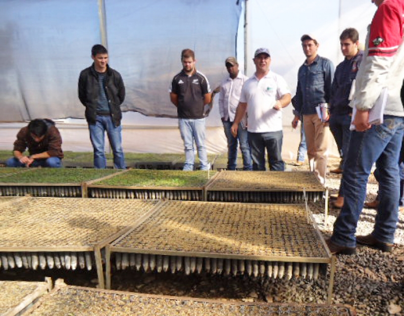 Os acadêmicos do 6° período de Agronomia realizaram uma visita técnica ao viveiro Ipê Florestal. Na ação, os estudantes conheceram as atividades e o comércio de mudas florestais. O proprietário da empresa foi quem acompanhou a visita e falou das exigências legais para a implantação de um viveiro e para o comércio de mudas. Atualmente, a Ipê Florestal produz mudas de cinco espécies de Eucaliptos e duas de Pinus. Após a apresentação, os acadêmicos desenvolveram atividades práticas da rotina de produção. A visita foi realizada na disciplina de Silvicultura, ministrada pelo professor Esmael Lopes dos Santos, que destacou a importância da atividade para a formação dos estudantes. "Os acadêmicos aprenderam a rotina de produção de mudas em um viveiro florestal, além de desenvolver as atividades ligadas a cada fase no processo de produção", conta o docente.