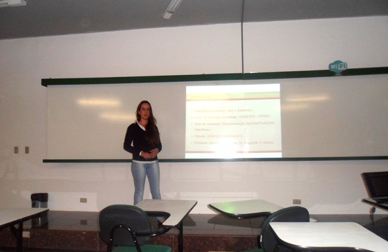 Os acadêmicos do 7º período integral e 9º período noturno de Agronomia realizaram as apresentações da conclusão dos estágios supervisionados I, requisito obrigatório da grade do curso. Os alunos participaram de um seminário para relatar as atividades desenvolvidas nas empresas ao longo do estágio. Cerca de 100 acadêmicos participaram da atividade. Os professores Laercio Boschini e Ana Paula Mourão são os responsáveis pela disciplina. De acordo com a professora e coordenadora de Agronomia, Ana Paula Mourão, esse é um momento importante de socialização das experiências vivenciadas no período do estágio. "Essa socialização permite o conhecimento de outras empresas, e assim a busca desses campos de estágio para outros alunos do curso", conta a docente.