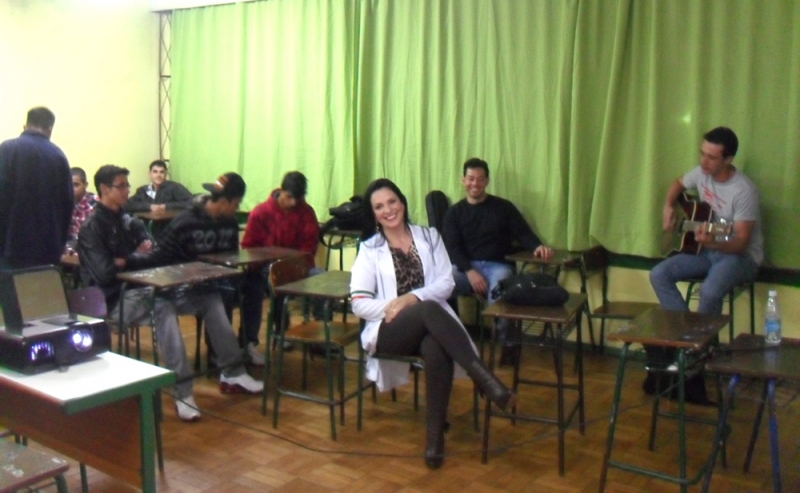 Os professores e alunos de Letras realizaram uma palestra para os estudantes do último ano do ensino médio no Colégio Estadual Marcos Carlos Schuster. Na atividade os palestrantes abordaram aspectos da linguagem, interpretação de textos, motivação nos estudos e questões relacionais ao Exame Nacional do Ensino Médio (ENEM). Os acadêmicos de Letras também cantaram e recitaram poesias. Para as professoras Patricia David e Suzana Ceccato, a experiência da atividade foi produtiva. "Por meio de ações como estas, desenvolvidas com os alunos do Colégio Schuster, é possível desenvolver a criatividade e aprofundar os conteúdos integrantes ao ENEM e vestibulares", destacam as docentes. Já, para o coordenador e professor de Letras, Paulo Fachin, o objetivo foi integrar os alunos do último ano do ensino médio com as atividades desenvolvidas e a dinâmica do Ensino Superior.