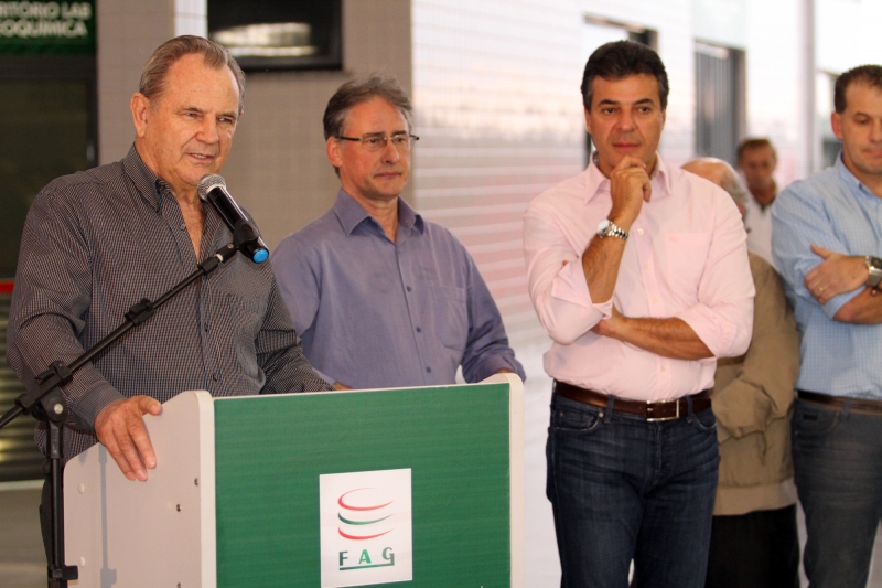 Na última sexta-feira (14) o Centro de Desenvolvimento Tecnológico da FAG (CEDETEC) inaugurou dois novos laboratórios, um de Processamento e Refino de Óleos Vegetais e outro de Oleoquímica. A solenidade de inauguração contou com a presença do governador do estado do Paraná, Beto Richa, do instituidor da FAG, Assis Gurgacz, dos diretores da FAG, além do prefeito de Cascavel, Edgar Bueno, deputados e vereadores. O evento fez parte de encerramento do Seminário de Integração Agroindustrial para a Cultura do Crambe. De acordo com Assis Gurgacz, são poucas instituições de ensino superior no país que possuem uma estrutura tão completa na área agrícola como a da FAG. "Nossa faculdade mostra mais uma vez que é uma instituição de excelência através da inauguração dessas novas estruturas que vão acrescentar ainda mais à formação de nossos acadêmicos e ao desenvolvimento da pesquisa em todo país", comenta Assis. Para o governador do Estado, Beto Richa, a FAG, por meio de Assis Gurgacz, sempre demonstra pioneirismo na pesquisa e no desenvolvimento científico. "Assim que conheci o projeto solicitei agilidade da empresa para viabilizá-lo. Já que este laboratório irá desenvolver importantes estudos para uma fonte de energia renovável, que trará desenvolvimento econômico e sustentável para esta região", enfatiza Richa. Os laboratórios, desenvolvidos em parceria com a Companhia Paranaense de Energia (Copel), tem o aval da Agência Nacional de Energia Elétrica (Aneel). O projeto de Pesquisa e Desenvolvimento (P&D) prevê a aquisição de cinco transformadores de distribuição e de um transformador de potência. Os equipamentos receberão o óleo produzido, extraído e preparado nos laboratórios da FAG para ensaios de campo no sistema de distribuição da Companhia em Cascavel. Dois outros projetos, também desenvolvidos pelo CEDETEC, estão em fase de aprovação. O primeiro, intitulado "Avaliação do Impacto Econômico e Ambiental Causado pelo OVI (Óleo Vegetal Isolante) e OMI (Óleo Mineral Isolante) em Ambientes Aquáticos e Terrestres", que será coordenado pelo pesquisador Cornélio Primieri. O segundo, que consiste na "Avaliação Técnica e Econômica do Melhor Aditivo com Potencial Antioxidante e Melhor Concentração para Aplicação em Éster Natural Isolante Pós-regenerado", desenvolvido pelo professor Ricardo Sonsin de Oliveira. Os projetos já foram aprovados na primeira fase e agora aguardam a atribuição da nota. Durante a inauguração, o governador do Estado, Beto Richa, se comprometeu a auxiliar na coleta das assinaturas dos diretores, assim que os projetos forem aprovados. Pesquisa Os novos laboratórios têm como objetivo avaliar o desempenho do óleo vegetal de Crambe como fluído isolante em transformadores de distribuição e de potência. "O projeto é direcionado à sustentabilidade, já que é que uma alternativa para substituir o uso do óleo mineral", enfatiza o idealizador do projeto, professor Renato Cassol. "Nossa intenção é de aprimorar o desenvolvimento agroindustrial da cultura", acrescentou Cassol. A pesquisa será desenvolvida em três etapas. A primeira consiste em avaliar a adaptação da cultura às condições climáticas e de solo da região oeste do Paraná. Já a segunda etapa visa a extração e o refino do óleo vegetal obtido do crambe, com o objetivo de contribuir para o aprimoramento do setor industrial de processo de oleaginosas, ligadas ao setor energético, ainda na segunda fase serão desenvolvidos estudos laboratoriais para o desenvolvimento de óleo vegetal isolante para o uso em transformadores de distribuição de potência. A etapa final será de avaliação do desempenho do óleo vegetal de crambe em transformadores de distribuição e potência, inserido na rede elétrica da Copel.