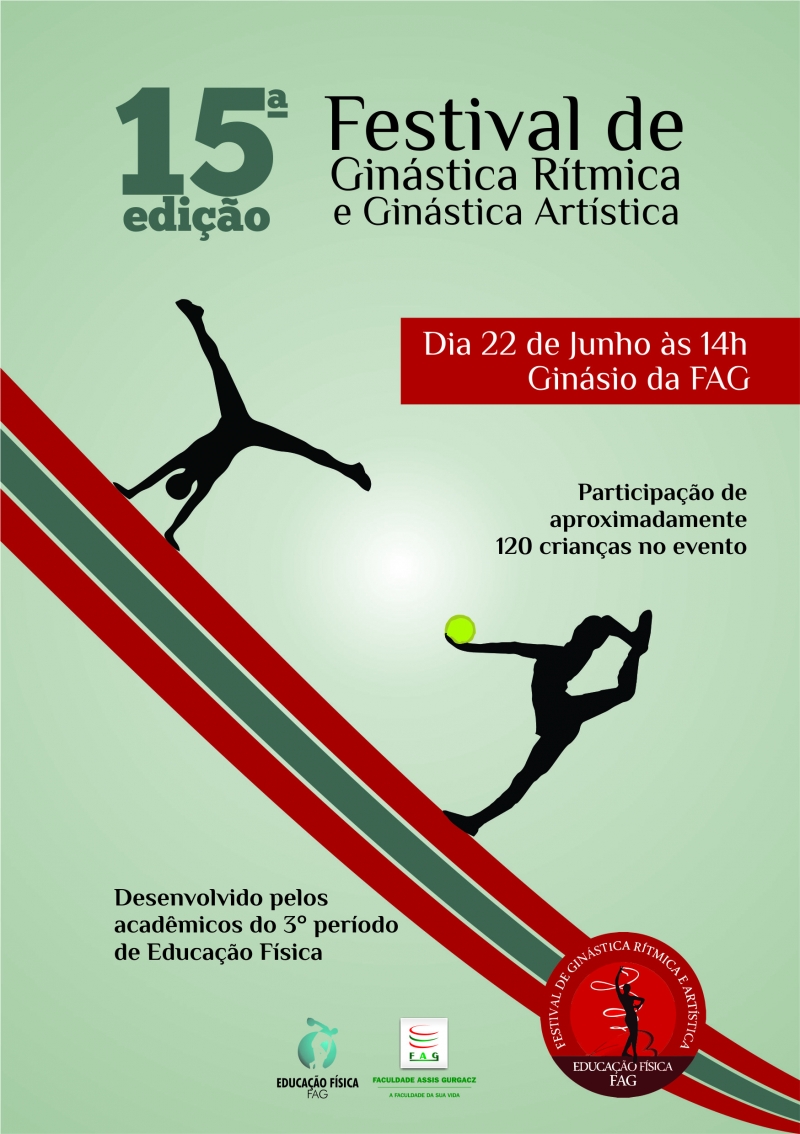 Acontece amanhã (22) a 15ª edição do Festival de Ginástica Rítmica e Artística. O evento começa às 14h, Complexo Esportivo da FAG. A atividade é promovido pelos acadêmicos do 3º período de Educação Física e é destinado aos alunos, egressos e público externo. A ação faz parte da disciplina de Ginástica Rítmica e Artística, ministrada pela professora Isabela dos Anjos. Nesta edição, o evento vai contar com a participação de 120 crianças nas apresentações. Todos estão convidados.