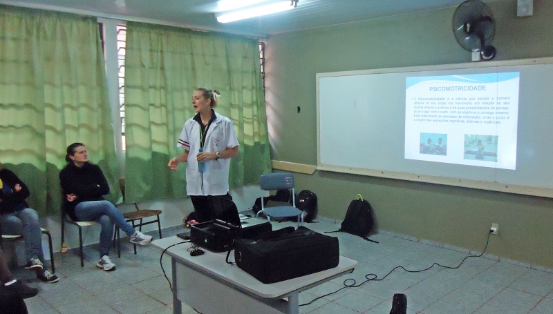 O curso de Pedagogia desenvolveu em junho, oficinas sobre Psicomotricidade envolvendo os cursos de Formação de Docentes em nível Médio dos Colégios Estaduais Princesa Izabel, em Três Barras do Paraná e Paulo VII, em Boa Vista da Aparecida. As atividades foram trabalhadas pela professora Francielle Cheuczuk, com as alunas Mariana Seixas e Thalita de Jesus. Para o professor Paulo Fachin, coordenador de Pedagogia, "foi uma grande oportunidade passarmos um dia inteiro com os alunos e professores destes colégios e poder compartilhar com eles um pouquinho das atividades que desenvolvemos em nosso curso", destaca. O professor também ressaltou a qualidade do ensino nessas escolas. "Foi surpreendente, também, chegar lá e saber que há muita qualidade de ensino e professores e alunos comprometidos com a formação de educadores. Fomos muito bem recebidos nos dois colégios, saímos muito satisfeitos e felizes". A continuação deste trabalho já ficou agendada para agosto, no laboratório de Pedagogia e Brinquedoteca da FAG.